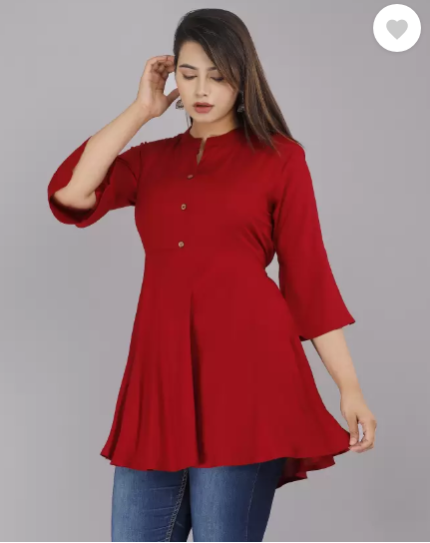 Casual Bell Sleeves Solid Women Red Top