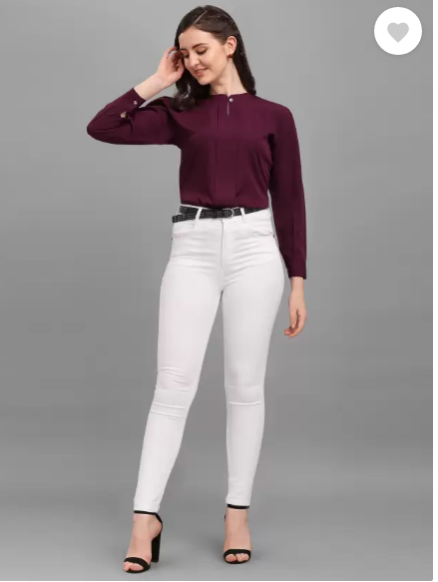 Kinjo Women Regular Fit Solid Mandarin Collar Formal Shirt