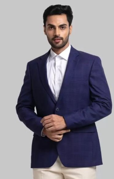 Color - Blue Fabric-Polyester Blend Pattern-Checkered Style code-RMJX02331-B8 Occasion-Formal Type-Double Breasted
