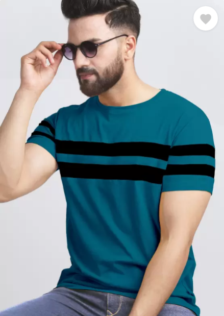 AUSK Solid Teal Blue & Blak Round Neck Half Sleeve T-Shirt