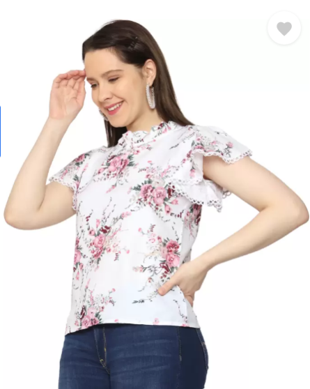 Smowkly Casual Flutter Sleeves Printed Women White Top